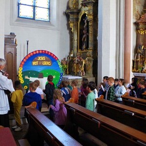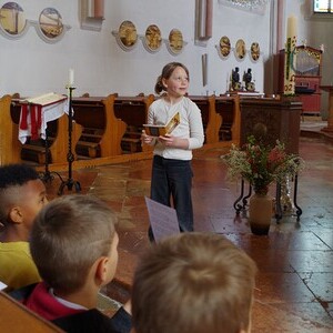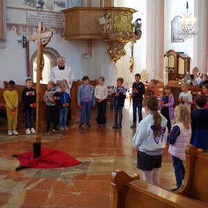 Wir hörten von einem Kind die Passions- und Ostergeschichte.