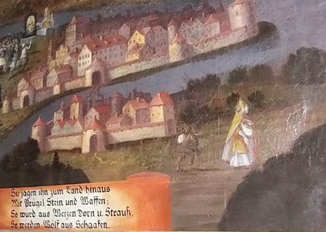 Im Inneren sind barocke Bilder mit der Lebensgeschichte des Hl. Valentin bewahrt, die in typisch barocker Weise der Sprache die Geschichte in Versen und Reimen erzählen.