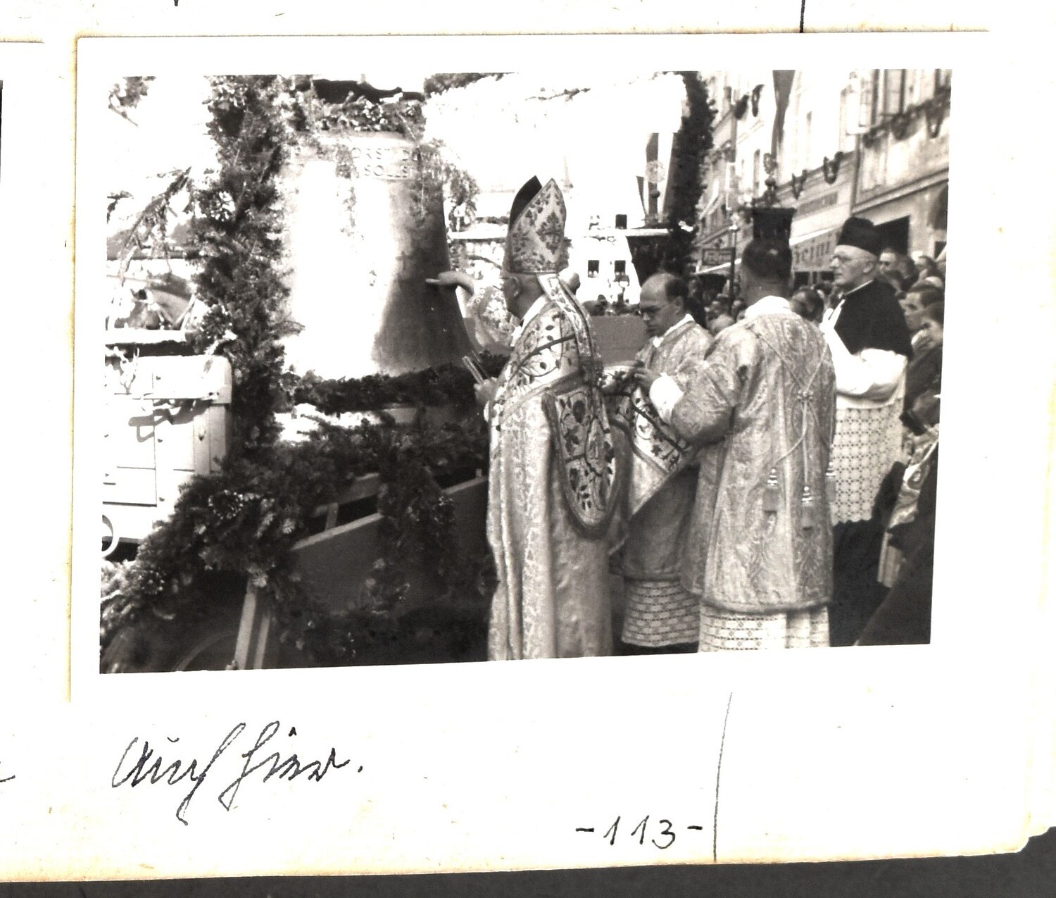 Aus dieser Schrift (siehe eingeklebter Einladungsfalter, Glockenweihe, Sa. 17. u. So. 18. 9. 1949) ist das ganze Programm zu ersehen. Die Einnahmen an beiden Tagen beliefen sich auf rund 6.000.- ÖS; Der Weihetag war ein geradezu ideal schöner u. warmer Festtag.