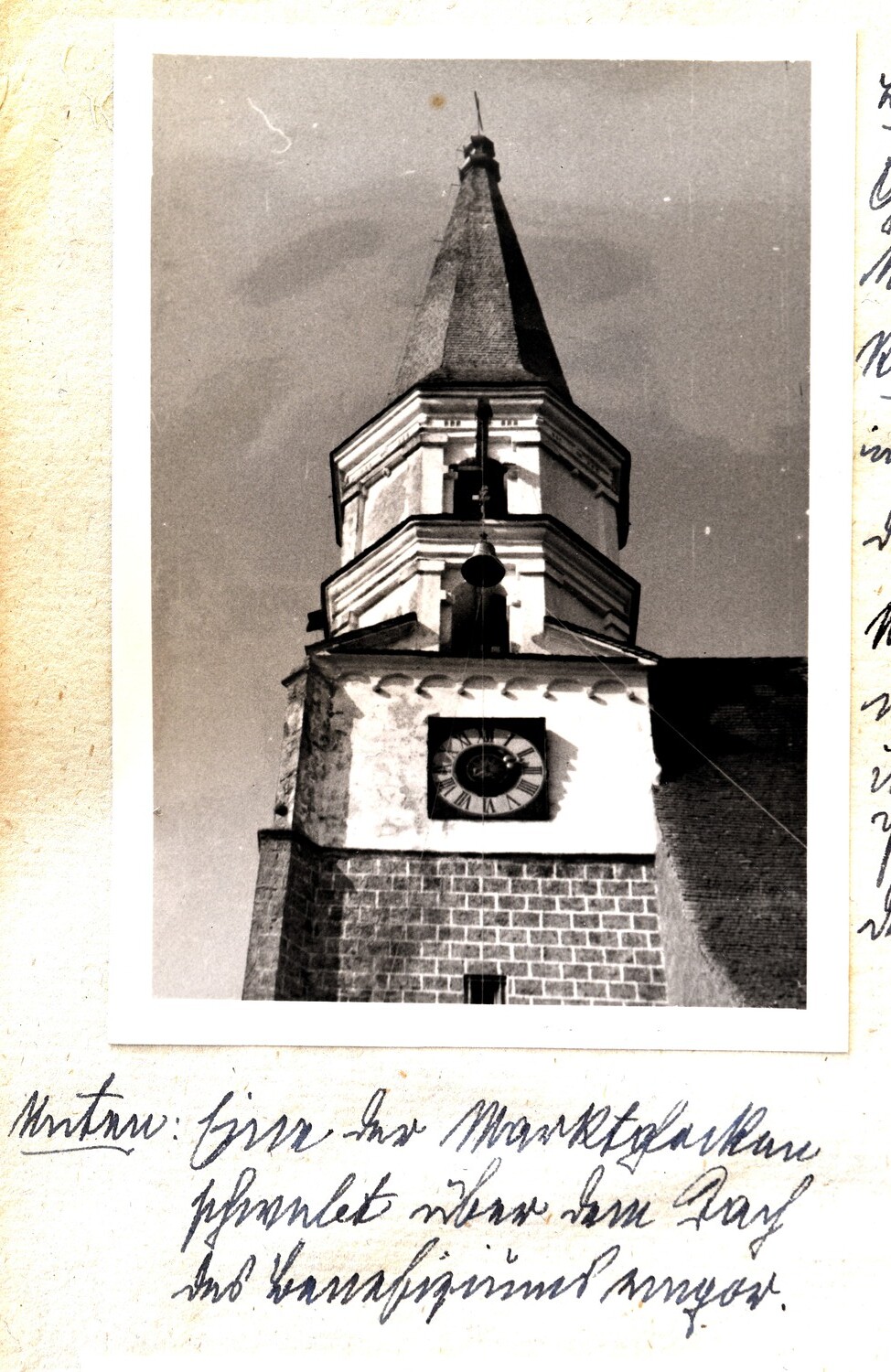 S 112: Am 9. Sept. hat Herr Ziegler die Glocken gebracht. Sie wurden beim Holzplatz Wiesner-Hager abgeladen. Dort sollten sie bleiben bis zur Weihe, weil sie auch bei Nacht bewacht waren.