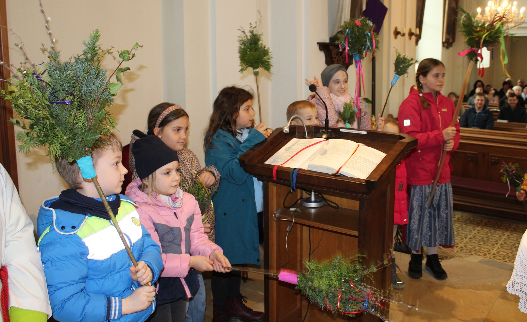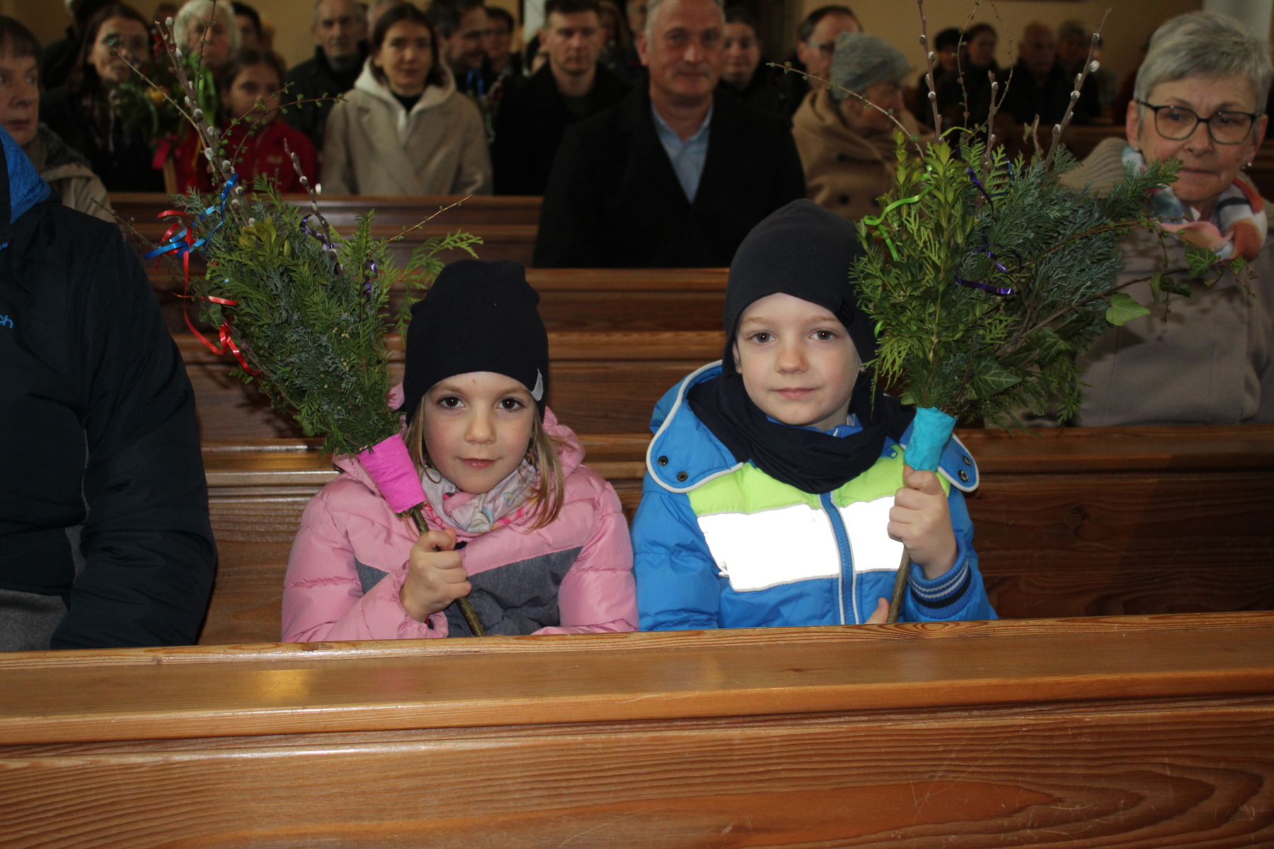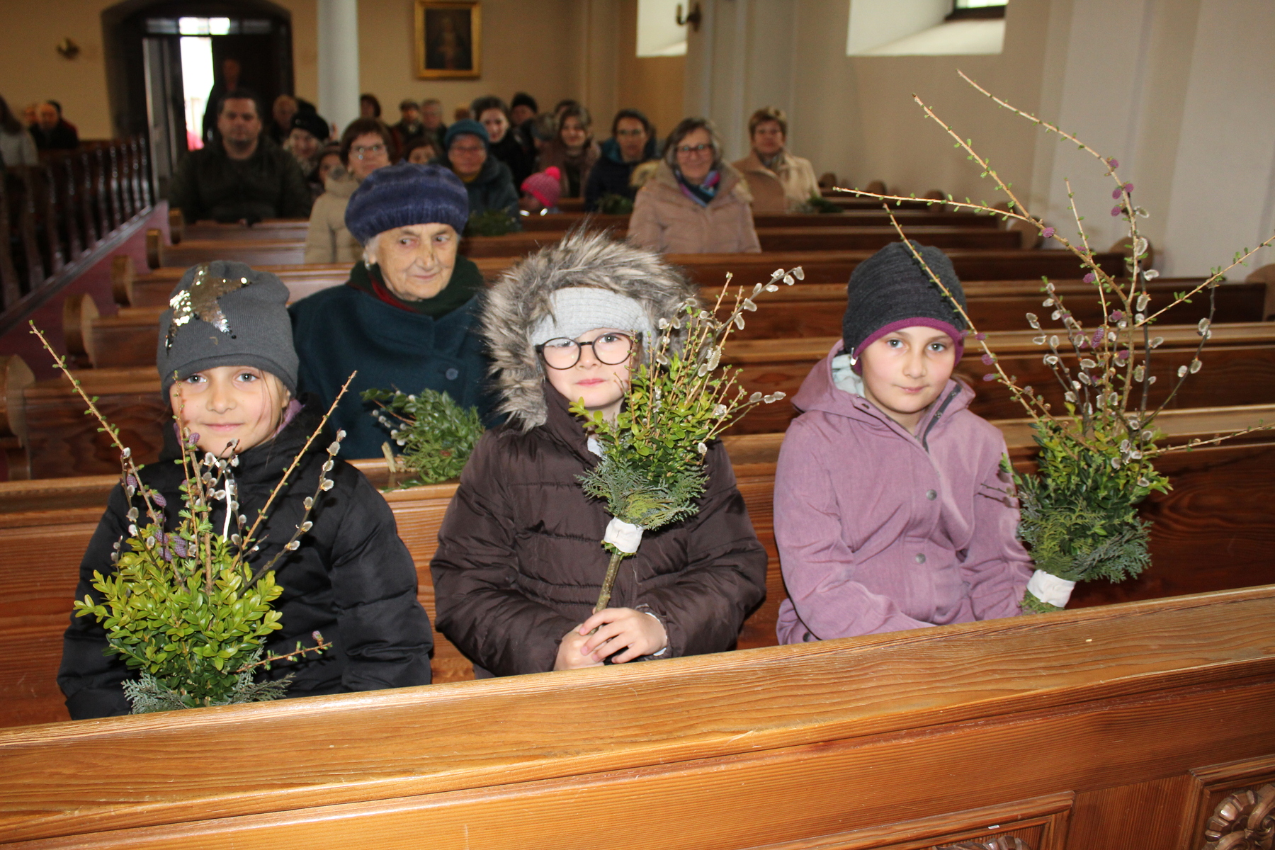 Wiesinger Pauline hat für die Ministranten, den Kirchenchor, die Mitglieder des PGR’s und des Finanzausschusses kleine Palmuschen gebunden. Vergelt’s Gott.