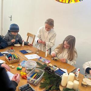 Kommts mit, gemeinsam suchen wir Weihnachten. Adventkranzweihe und 1. Adventsonntag mit Kinderelemten. Es wurde schon fleissig gesungen und gebastelt. Veranstaltet vom Ehe und Familienausschuss.
