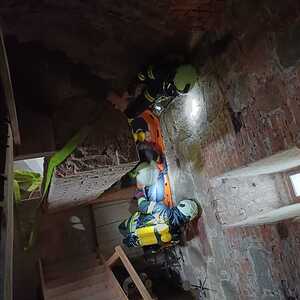 Atemschutz Übung im Kirchturm der Pfarre Ampflwang