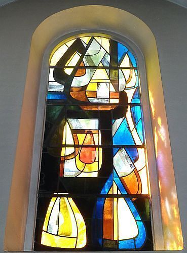 Das Thema der Betonglasfenster im Anbau : "Empor die Herzen!"