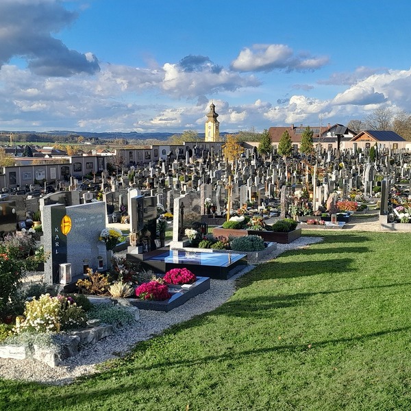 Unter Pfarrer Johann Kerschberger wurde eine Aufbahrungshalle gebaut und der Vorplatz neu gestaltet, sodass unser Friedhof den Erwartungen der heutigen Zeit entspricht.