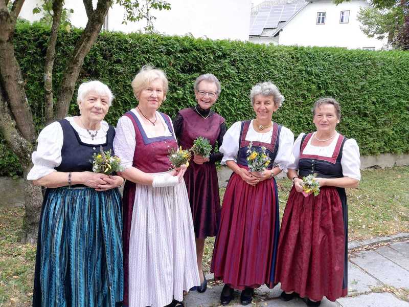 Die Goldhaubenfrauen haben Kräuterbüscherl mit 12 Heilkräuter gebunden und an die Mitfeiernden verteilt.