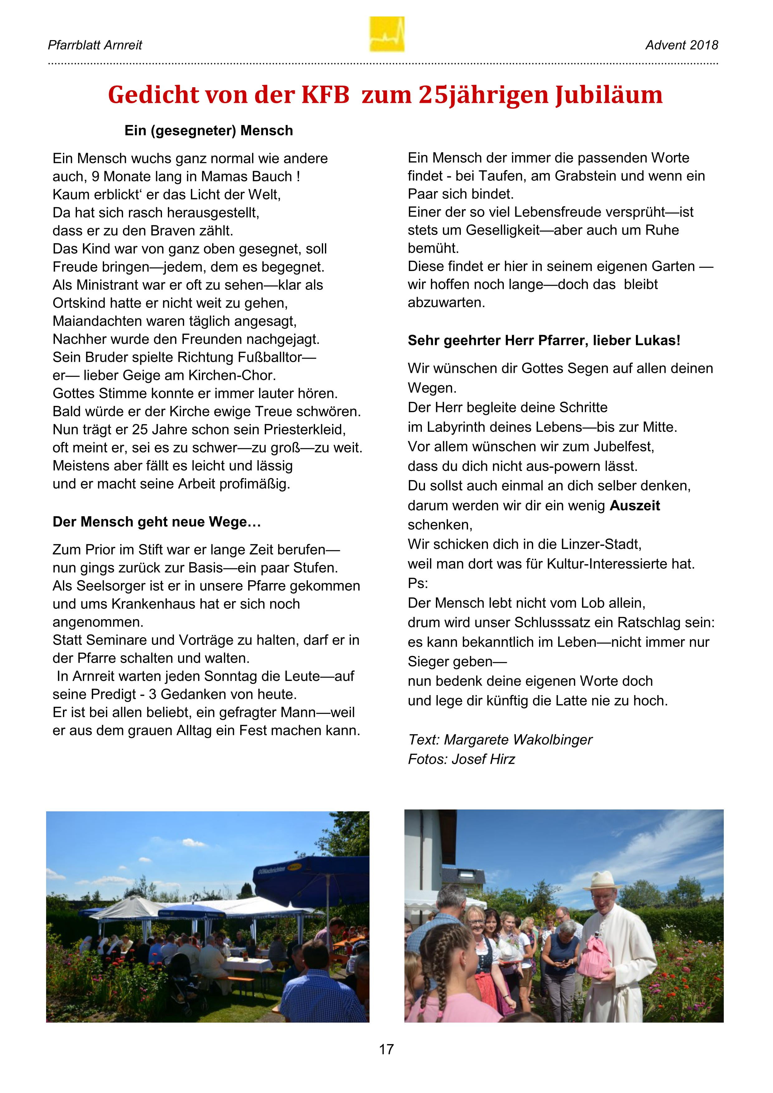 Silbernes Priesterjubiläum von Pfarrer Lukas