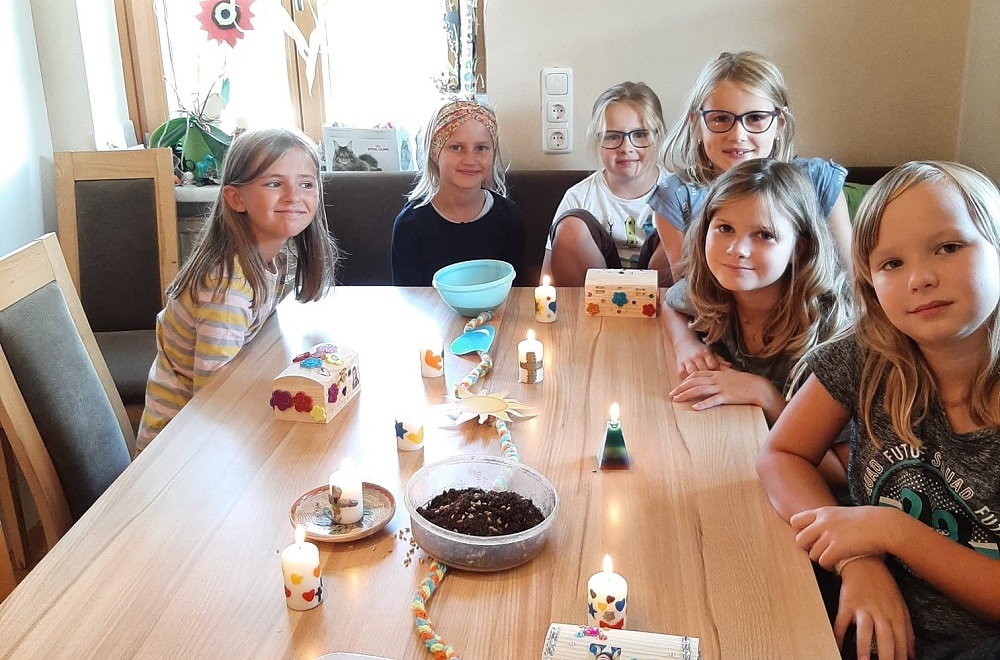 Die Zeit der Vorbereitung durch Tischeltern hatte vor den Ferien begonnen und ging nach der Sommerpause weiter: Gruppenstunden, Brot backen, Kirche erforschen, Kirchturm besteigen, Fahne und Kreuze mitgestalten und eine Versöhnungsfeier – die Kinder haben begeistert mitgemacht!