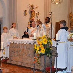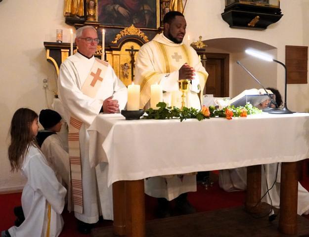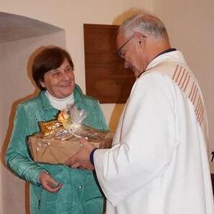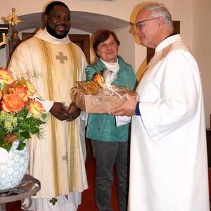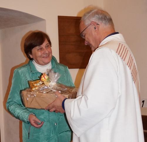 Und so ließen es sich die Pfarrbewohner/innen und Pfr. Francisnicht nehmen, ihn gebührend zu feiern und ihren Dank auszudrücken. Beim Abendgottesdienst in Wildenau übernahm eine Bläsergruppe der Solinger den musikalischen Part, in Aspach am Sonntagvormittag gestaltete unsere Organistin Katharina Paulusberger mit der Klarinettistin Annemarie Dullinger aus Neuhofen/Innkreis die festliche Messe. Zum Schluss der beiden GD erhielten die Mitfeiernden eine kleine Schokolade mit Dank und Wünschen für Norbert. Norbert selbst erhielt in Wildenau und Aspach süße Sachen zum Genießen in Natura und in Form von Gutscheinen.