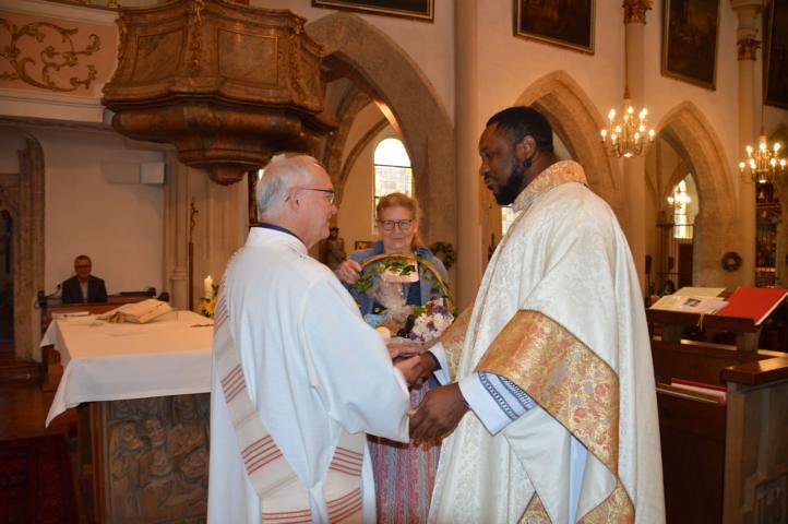 Pfarradministrator Mag. Francis Abanobi drückte großeWertschätzung und seinen Dank für den Einsatz als Diakon aus, aber auch für die vielen aktiven Jahre davor im ehrenamtlichen Dienst für die Pfarre.