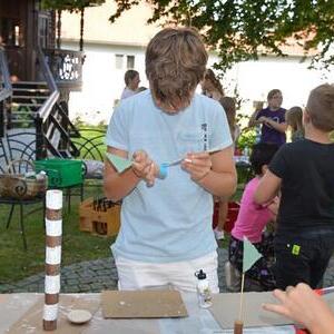 Jede/r war beschäftigt mit Anmalen, Schmirgeln, Laubsägen, Verleimen und Schmücken des Turms.