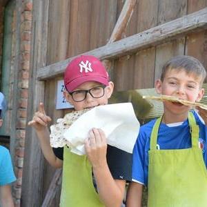 Dort angekommen, wurden wir gleich mit Getränken versorgt und in vier Gruppen eingeteilt: Holzarbeiten, Zelten backen, Getreide mahlen und eine Führung durch die Gebäude. Alle dort anwesenden Personen bemühten sich sehr, uns diesen Nachmittag so interessant wie möglich zu machen.