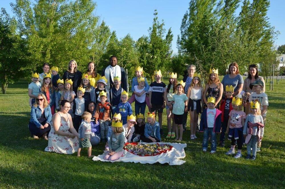 Bei perfektem Frühlingswetter haben sich zahlreiche Familien beim Geburtenwald getroffen, um gemeinsam die Familien-Maiandacht zu feiern. Bei einer Maiwanderung mit 3 Stationen ist uns Maria auf unterschiedliche Art und Weise begegnet: als Mutter, als Himmelskönigin und als ein Herz voll Liebe. Wir haben Vieles über Maria erfahren, die Kinder durften selbst Kronen basteln und verzieren, und ein großes Herz mit Blütenblättern dekorieren. Einige Erstkommunionkinder haben die Fürbitten vorgelesen.