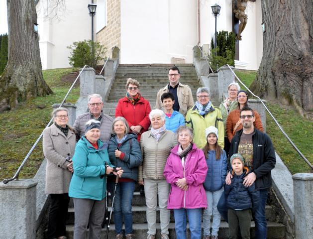 Beim Marterl der Familie Fuchs in Buchleiting hielten wir die erste Gebetsrast, die nächste war bei der Deublerkapelle in Eisecking. Kurz vor 10 Uhr erreichten wir die Schlosskapelle, wo sich schon viele andere Gottesdienstbesucher eingefunden hatten.