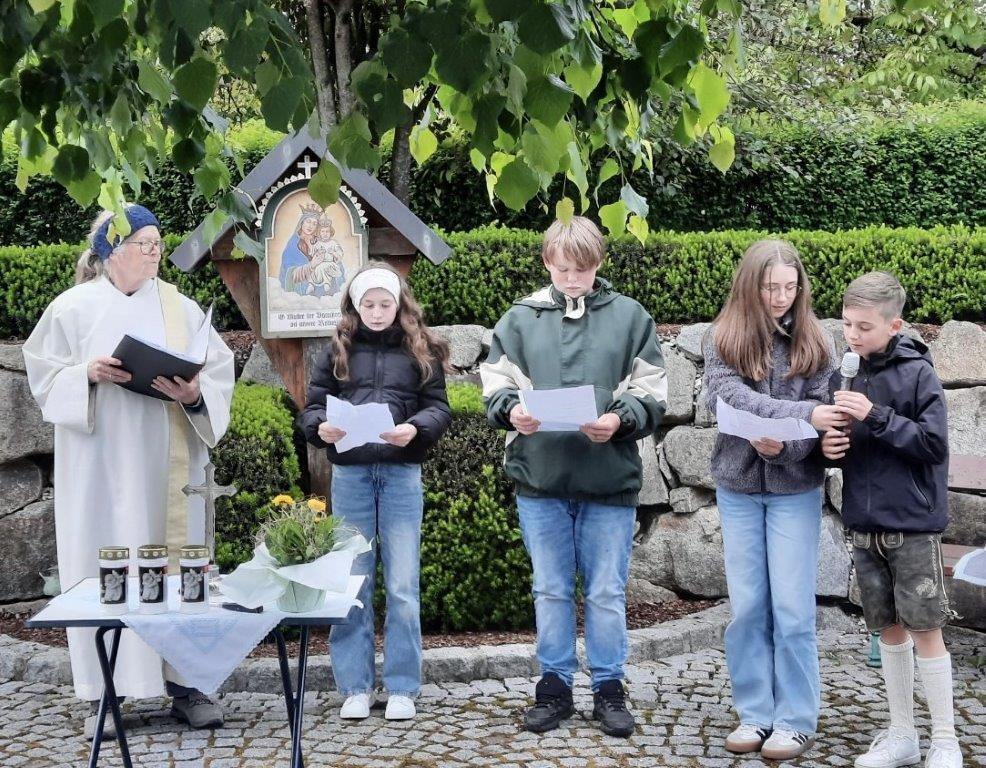 Am Donnerstag, 01. Mai, wurde um 18:00 Uhr beim Geburtenwald die Familien-Maiandacht, gestaltet vom Kinder-Liturgie-Team, von Pfarrer Francis mit zahlreichen Kindern und Erwachsenen gefeiert.