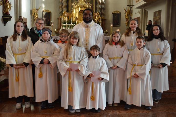 Wie jedes Jahr zu Christkönig wurden die neuen Ministranten feierlich in die bestehende Schar aufgenommen. Heuer waren es zwei Mädchen, nämlich Johanna Walzinger aus Aspach und Linda Streif aus Wildenau, wo sie auch den Ministrantendienst versehen werden.