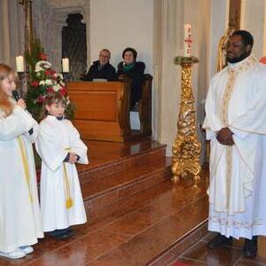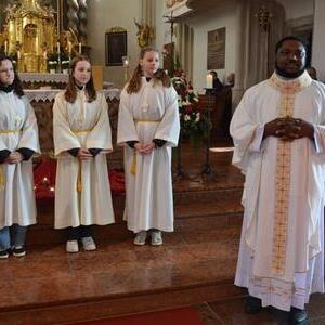 Nach der Ansprache von Pfarrer Mag. Francis Abanobi folgte die Vorstellung, der Segen über die Mädchen, die Angelobung und das Überreichen der Geschenke: MInistrantenkreuz, Ratsche und Urkunde. Er drückte seine Freude darüber aus, dass sie sich für diesen Dienst entschieden hatten.