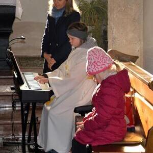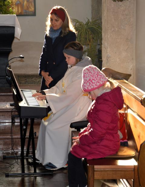Musikalisch wurde die Feier von der Musiklehrerin Frau Evgenia Zeilinger auf dem Keyboard sehr stimmungsvoll begleitet. Zwei Klavierschülerinnen trugen ebenso einige Stücke vor.