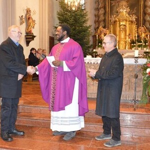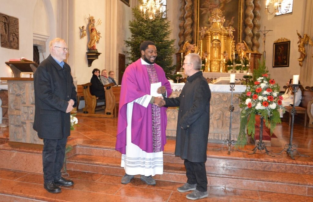 Im Rahmen des Pfarrgottesdienstes am Sonntag, 07.12.2025, wurde Hans Rauscher und Franz Schickbauer von Pfarrer Francis und PGR-Obfrau Lotte Fuchs im Namen der Pfarrgemeinde ein großes Danke und Vergelt´s Gott für ihr Engagement, für ihre Zeit, für ihren Einsatz und ihre Arbeiten, die sie alle unentgeltlich durchgeführt haben, ausgesprochen. Als Dank-Geschenk wurde ihnen eine Glocke aus Holz überreicht.
