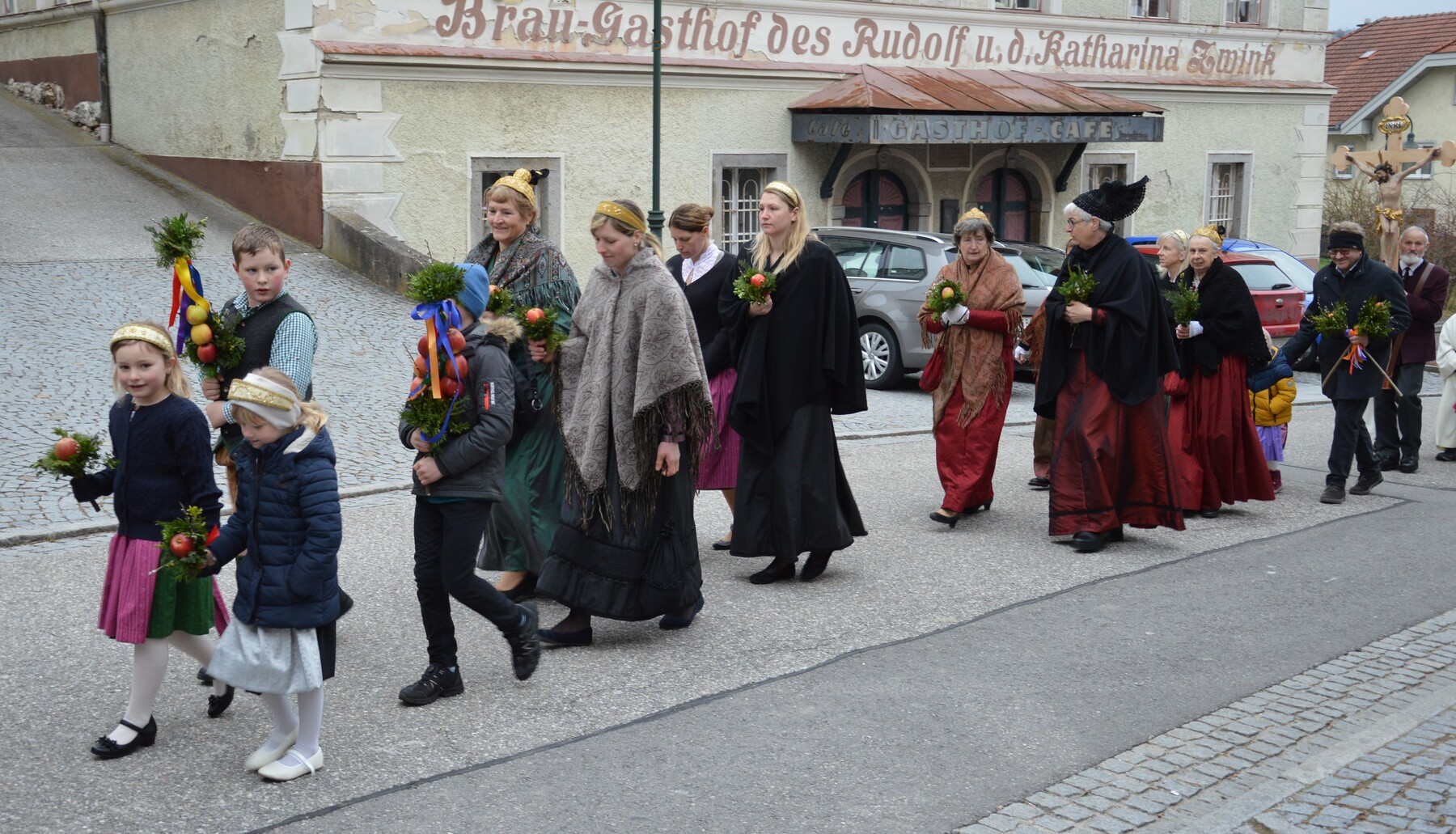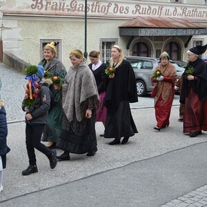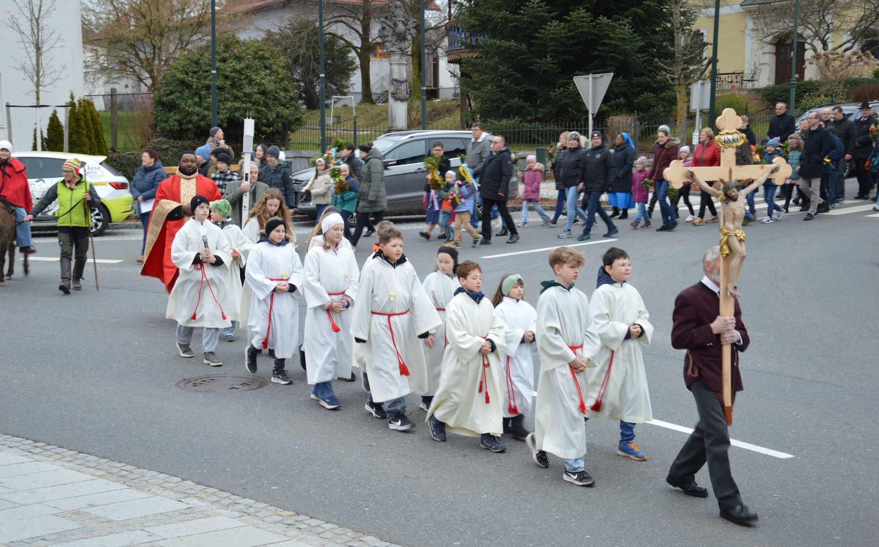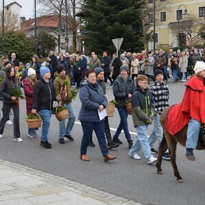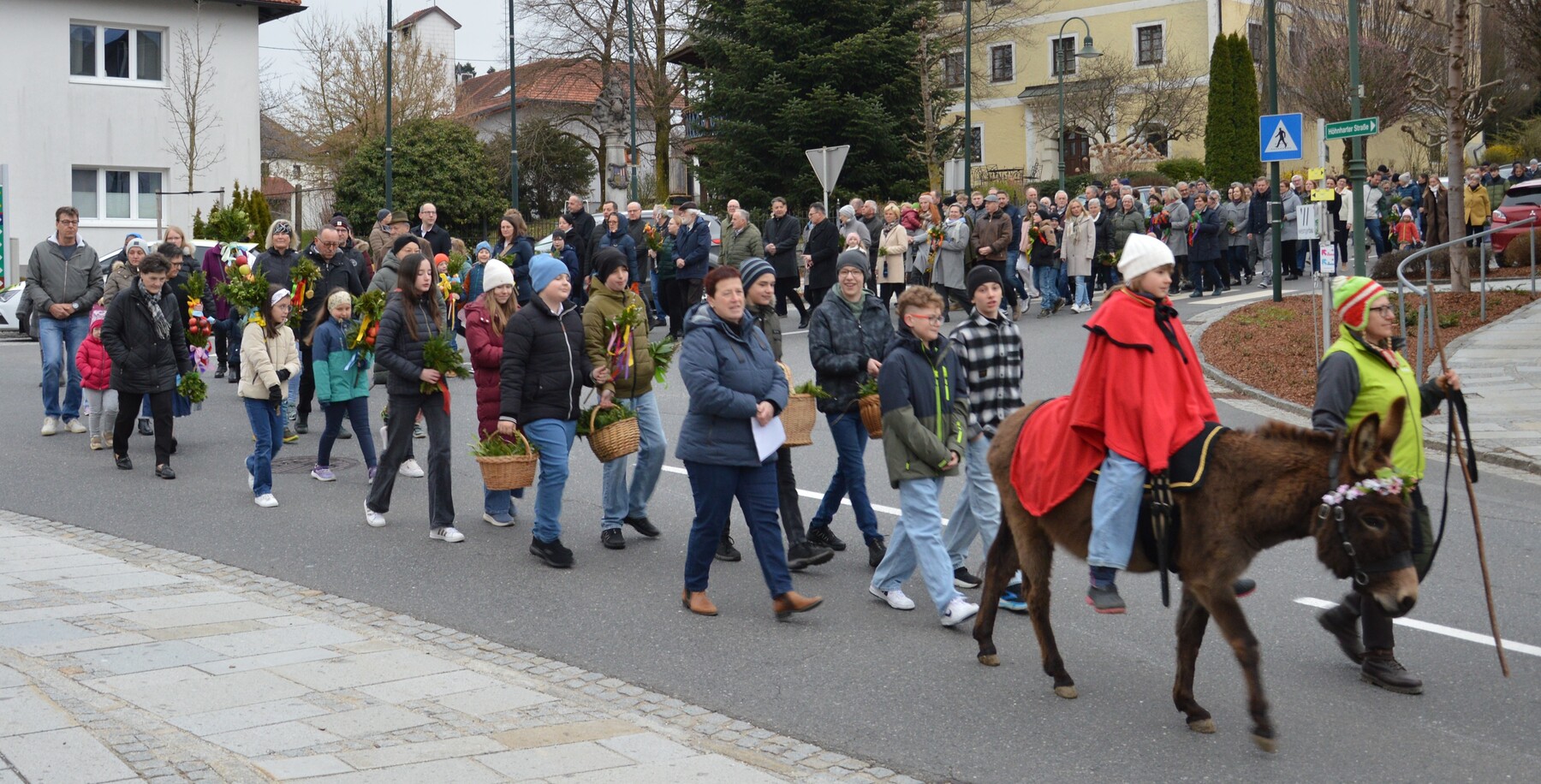 Mit der Palmprozession und der Palmweihe wird am Palmsonntag an den Einzug Jesu Christi, in Jerusalem gedacht. Jesus ritt auf einem Esel, das Volk jubelte ihm zu und streute Palmzweige.