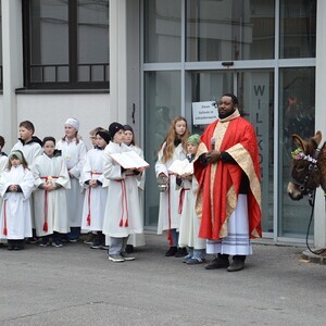 Zum Abschluss des feierlichen Pfarrgottesdienstes bedankte sich Pfarrer Francis sehr herzlich bei den zahlreichen Ministrantinnen und Ministranten, bei der Musikkapelle Solinger für die musikalische Umrahmung der Palmprozession, sowie bei allen Gottesdienstbesuchern, vor allem aber bei den Kindern, für ihr Kommen und Mitfeiern. Es war eine große Freude, dass neben den Goldhaubenfrauen und der Landjugend die Pfarrbevölkerung, insbesondere viele Familien mit ihren Kindern, zur Feier des Palmsonntags in die Kirche gekommen sind.