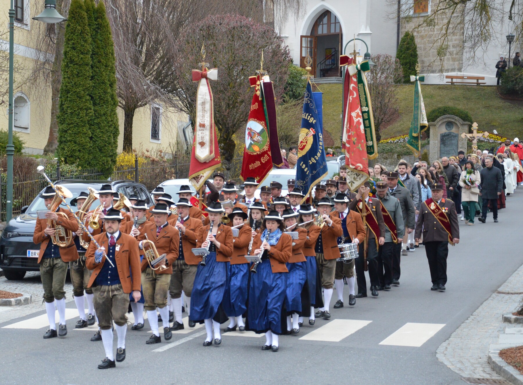 Nach der Segnung der mitgebrachten Palmbäume und -buschen erfolgte unter den Klängen der Solinger der feierliche Einzug in die Pfarrkirche zur Feier des Festgottesdienstes.