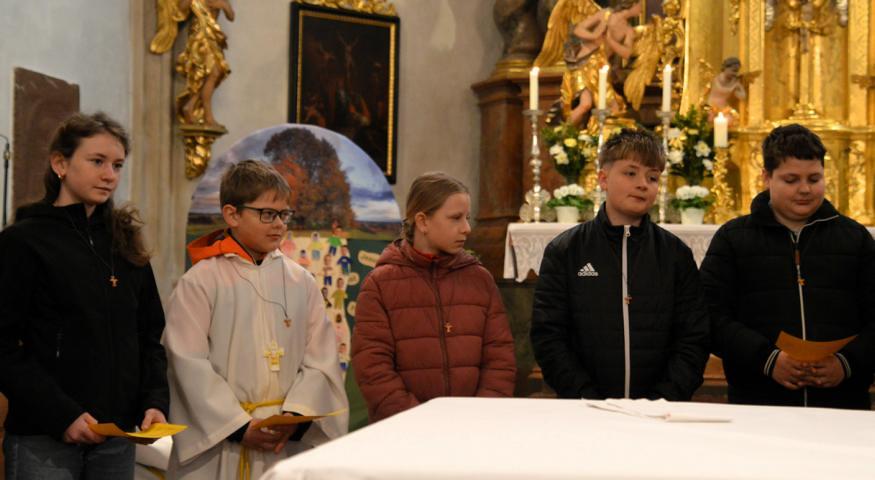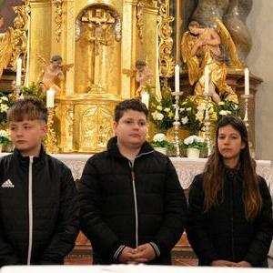 Am 12. April fand in unserer Pfarre der Firmvorstellgottesdienst mit den 24 Firmlingen, ihren Familien und der Pfarrgemeinde statt.