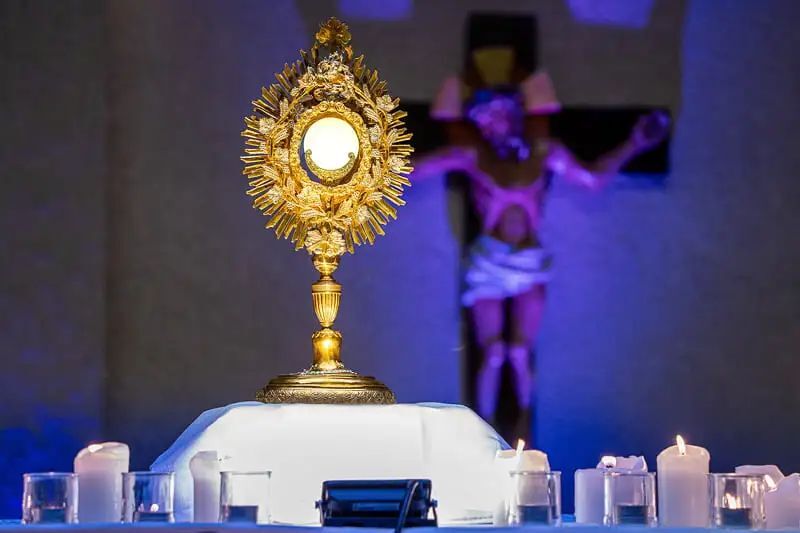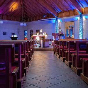 Die wunderschön beleuchtete Kirche steht offen für alle zum Beten, Kerze-Anzünden, Verweilen in Stille, Beichten, Für-sich-beten lassen und vor allem, um Jesus zu begegnen.