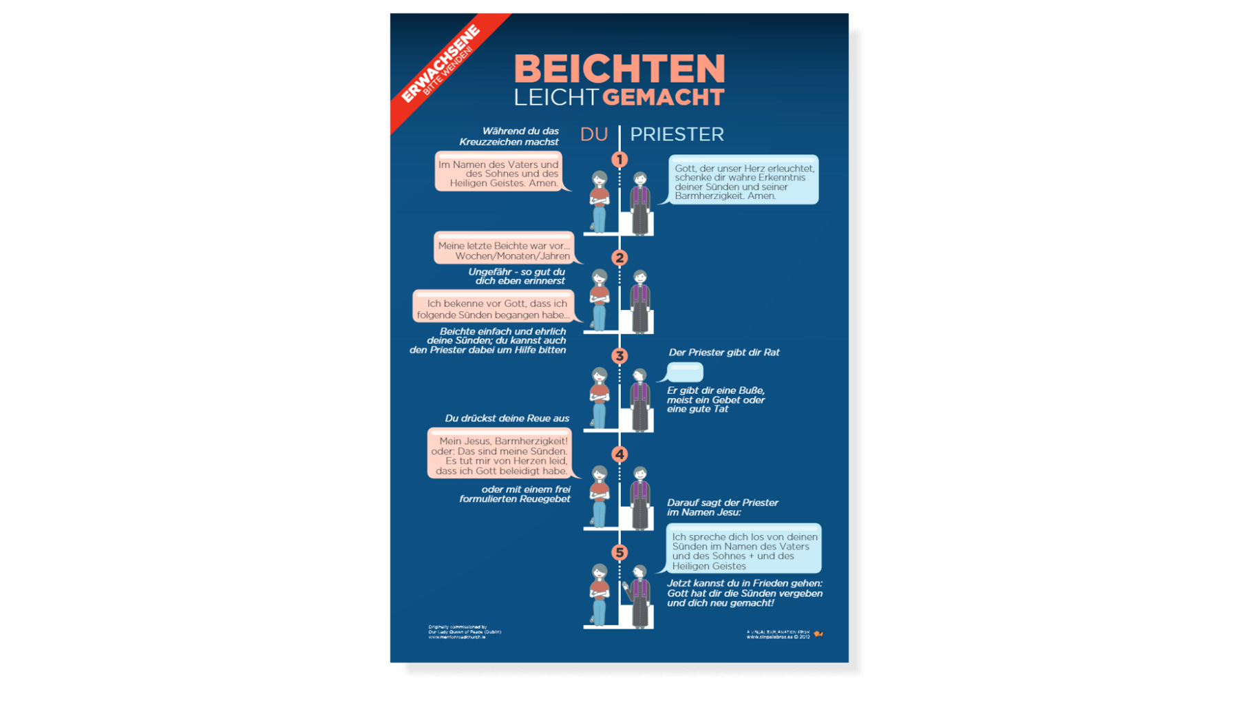 Nach der Beichte bleibt die Bußaufgabe, welche dir der Priester auferlegt hat. Sie kann ein Gebet sein, aber auch der Auftrag, entstandenen Schaden oder verletzte Gefühle wiedergutzumachen. Danke Jesus für die Vergebung deiner Sünden!