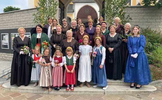 Goldhaubengruppe Atzbach Die Gründung der Gruppe Atzbach beruht auf einem 1975-1976 abgehaltenen Goldhauben-Stickkurs an dem sich 12 Frauen beteiligten.