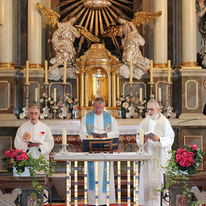 Gemeinsam mit anderen Wallfahrern feierten wir eine Messe und durften anschließend die Kirchenräumlichkeiten besichtigen.