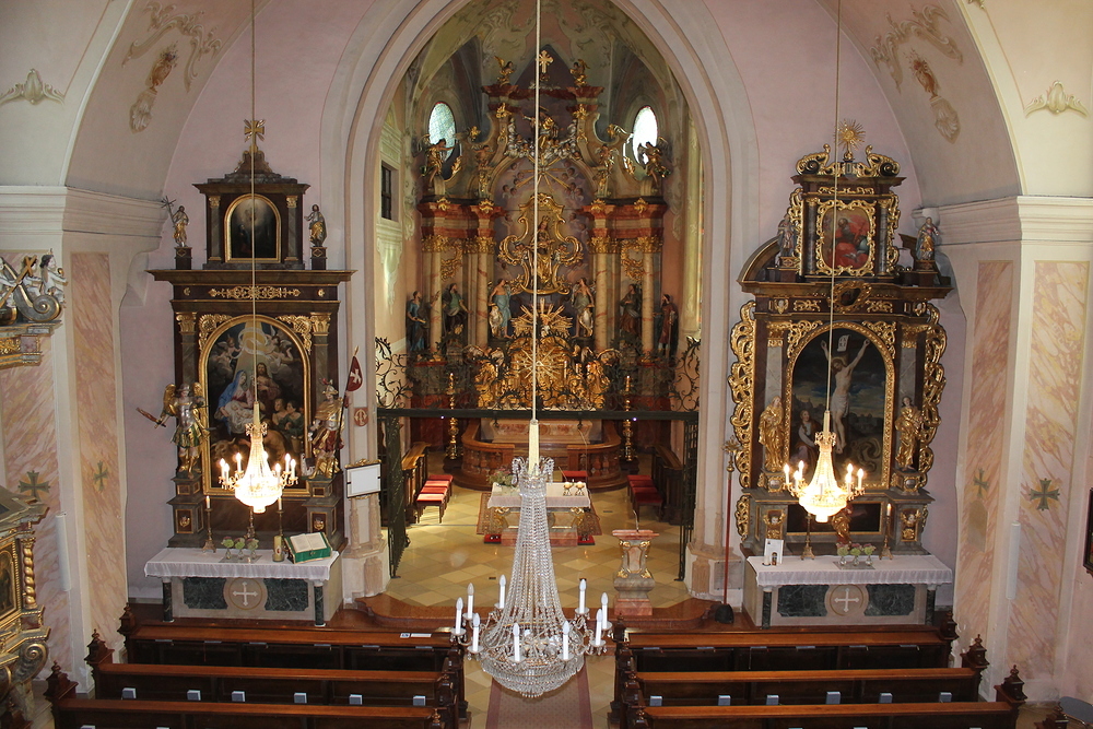 In Maria Scharten angekommen wurde die Wallfahrtskirche aus dem 15. Jahrhundert besichtigt und von der Mesnerin vorort fachkundig erklärt. Nach der Messe ging es dann auch gleich weiter, entlang von dichten Obstgärten und riesigen Gemüsefeldern zur nächsten Station dem Mittagessen.