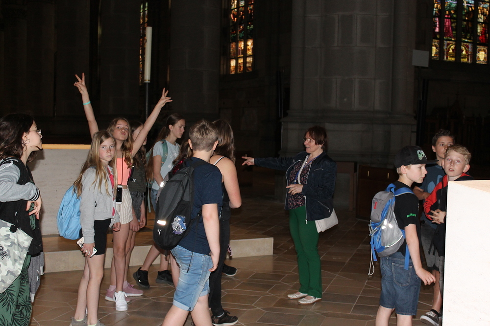 Nachdem alle 28 Kinder und Jugendlichen im Reisebus des Busunternehmens Apfl einen Platz gefunden hatten, ginge es los nach Linz. Unser erster Stop war dann beim Landhaus, von wo wir zu Fuß zum Mariendom gingen. Nach einer Kugel Eis für jeden, konnte es auch schon mit der Domführung los gehen. In zwei Gruppen wurde alles erkundet und interessiert bei den Domführern nachgefragt.