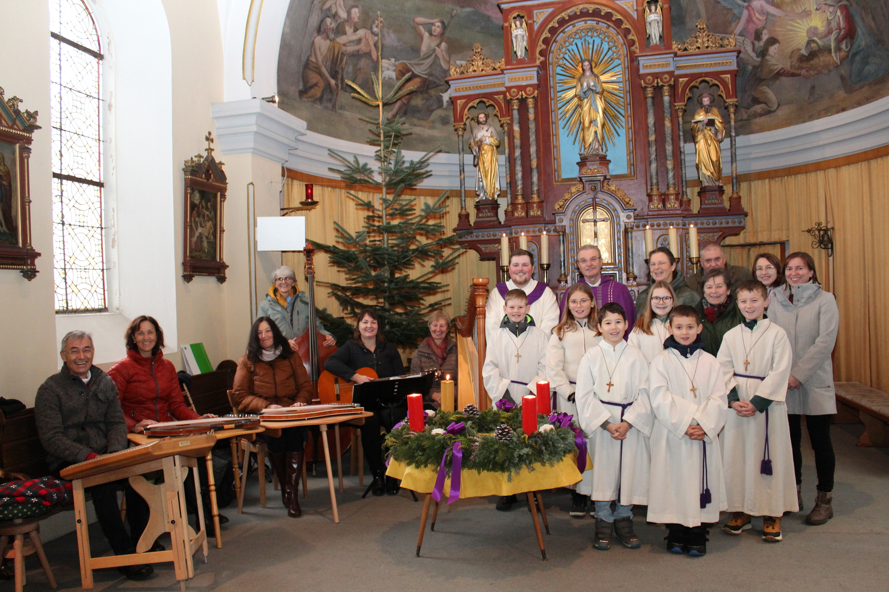 Pfarrer Janusz Zaba und Pastoralvorständin Maria Eicher stellten sich am 4. Adventsonntag bei der Hl. Messe, die mit weihnachtlichen Klängen vom Auracher Saitenwirbel umrahmt wurde, vor.