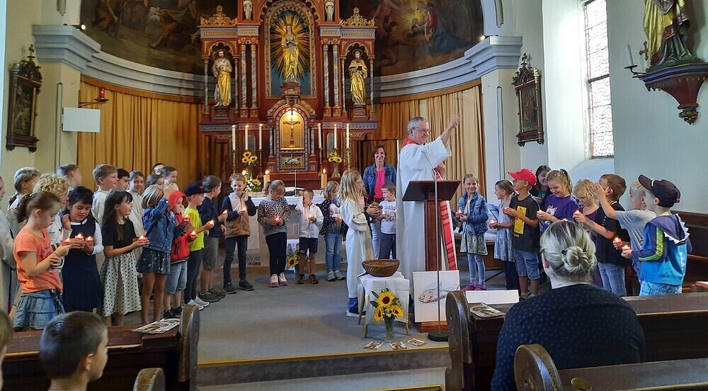 Schulschlussgottesdienst am 6. Juli 2023 " Wir machen Ferien, Ferien - wir machen eine wohlverdiente Pause. So lebet wohl bis wir uns wiedersehn!". - so sangen die Schüler u. Schülerinnen der VS Aurach mehr: Schulschlussgottesdienst