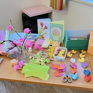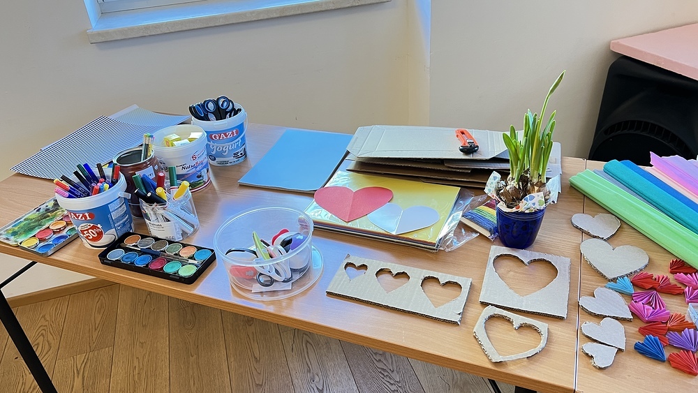 Dafür wurden einen ganzen Vormittag lang Muffins gebacken, Karten kunstvoll gestaltet, in der Werkstatt gesägt und geschliffen, es wurden Blumen eingepflanzt, Glücksbringer verpackt und Papierdraht zu Herzen gebogen. Die Jugendlichen waren mit großem Engagement und viel Kreativität bei der Sache. Beim gemeinsamen Arbeiten geschah ein munteres Kennenlernen. Am Ende konnten gut 30 Überraschungspakete für einen schönen Abend zu zweit geschnürt werden.