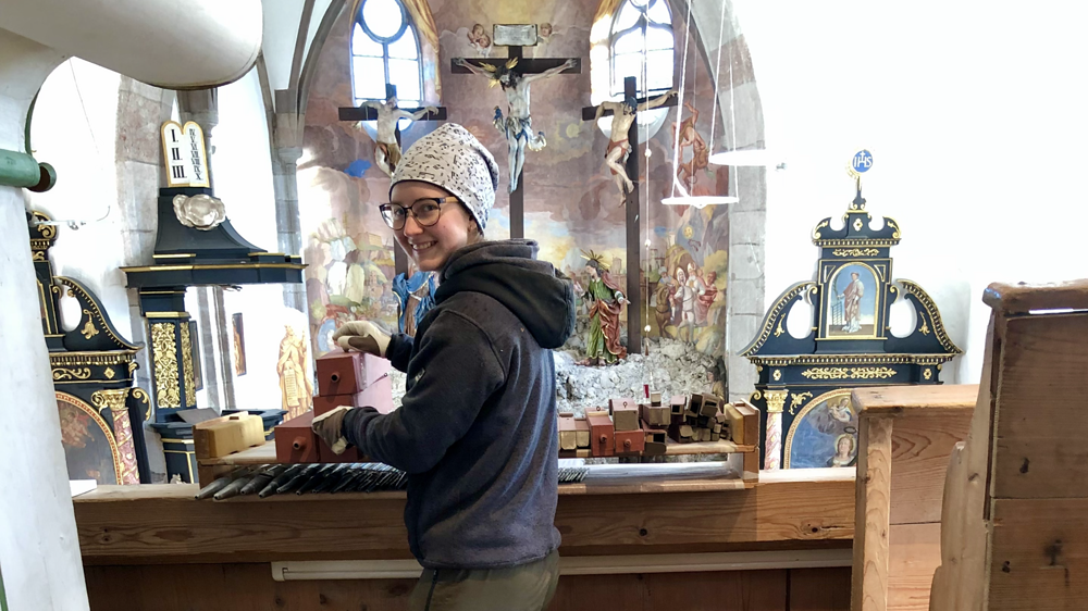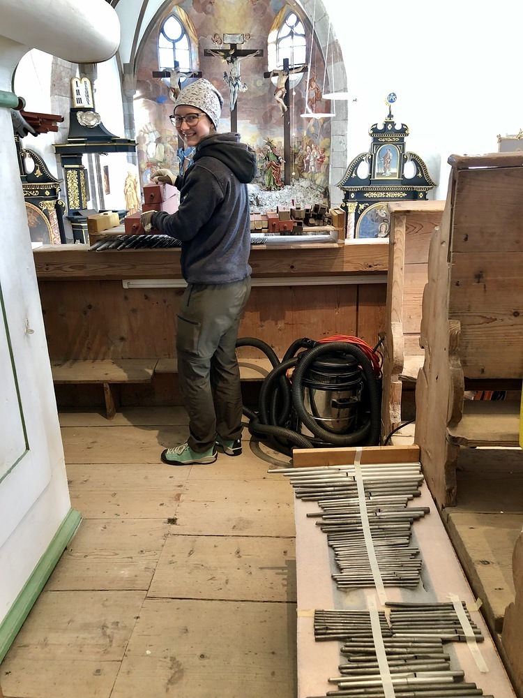 Das erste freundliche und mir vertraute Gesicht, gehört zur angehenden Orgelbauerin und unserer hochgeschätzten Organistin, Theresa Englbrecht, die bei der Firma Orgelbau Kögler in St. Florian, ihre Ausbildung absolviert.