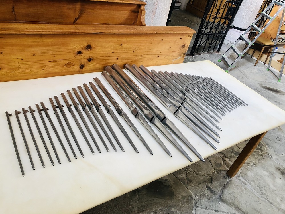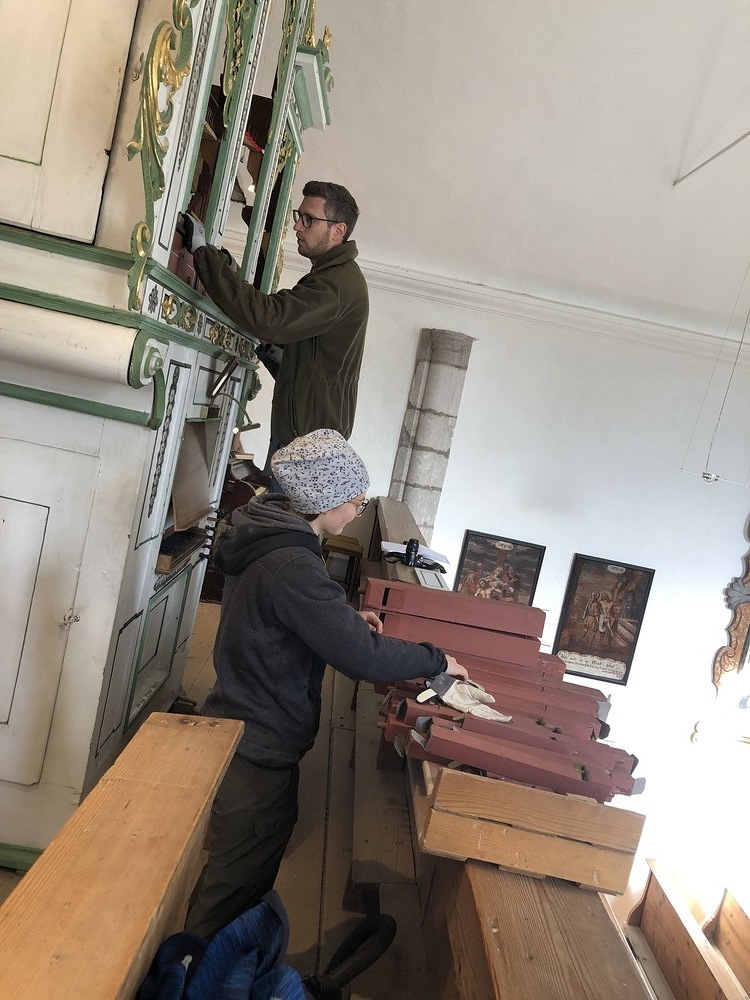 Eins vorab, diese Arbeiten werden etliche Monate in Anspruch nehmen, um das gewünschte Resultat zu erzielen. Im Frühsommer 2022, wenn sich die Luftfeuchtigkeit stabilisiert hat, wird die Orgel, - so Gott will - wieder aufgestellt werden.