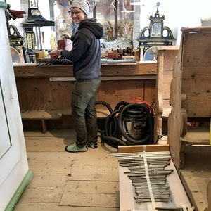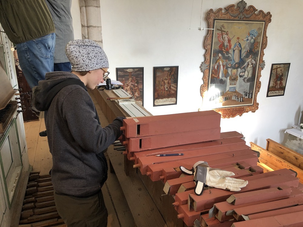 - Es wird das gesamte Innenleben der Orgel abgetragen und in die Werkstätte in St. Florian gebracht.