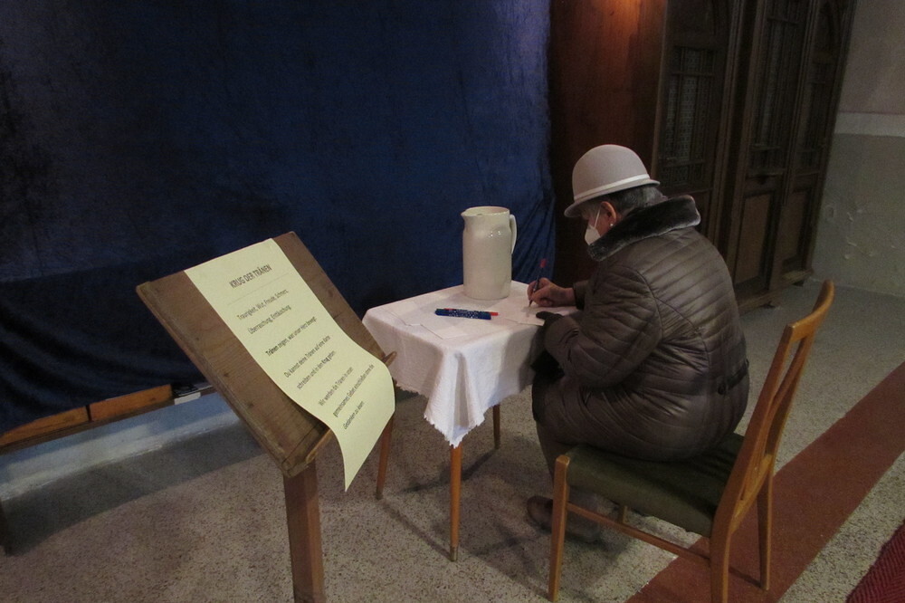 - Einige schrieben ihre Gefühle der Trauer, Wut oder Enttäuschung auf einen Zettel und übergaben sie dem Krug der Tränen.