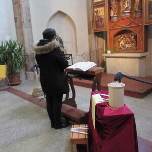 - Mit den Worten von Augustinus "Tolle et lege" - "Nimm und lies!" wurden die Besucher ermutigt, das Lektionar am Ambo zu betrachten, zu befühlen und darin zu lesen.