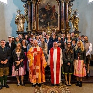 Prälat Maximilian Mittendorfer spendete in zwei Gottesdiensten 25 Jugendlichen aus den Pfarren Bad Goisern, Gosau und Obertraun das Sakrament der Firmung.