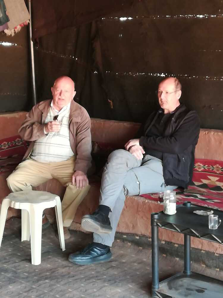 Bei den Beduinen tranken wir köstlichen Tee und rüsteten uns mit neuer Kopfbedeckung aus.