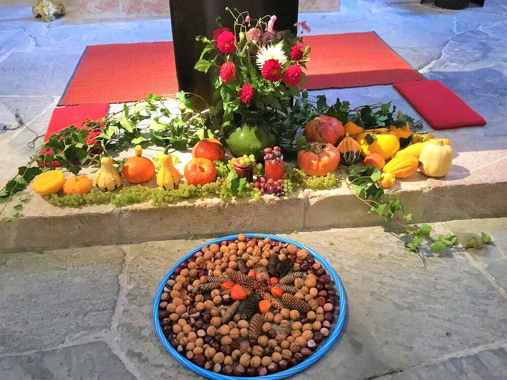 Ein großes Dankeschön für die Kürbisse, ein Danke für die Trauben, ein Danke für die Blätter, ein Danke für die Liebe,….. unendlich viel ist uns eingefallen, wofür wir voller Freude DANKE sagen möchten.