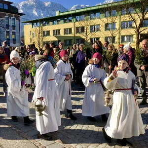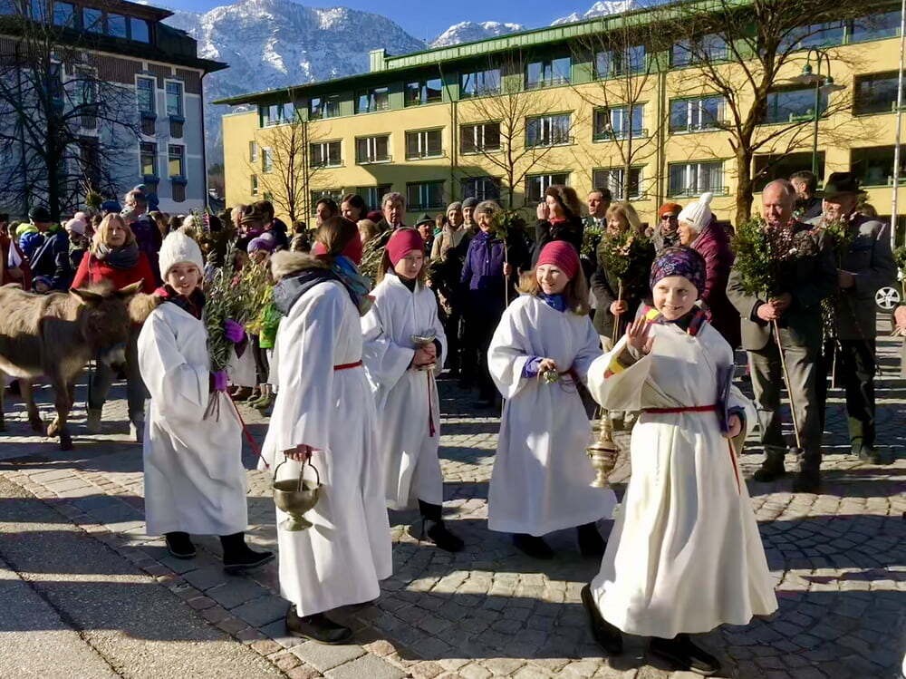 Von dem regen Zulauf gänzlich unbeeindruckt, schritt dieses Jahr "Pegasus" ein Esel, im Herzen der Prozession mit und bereitete so biblisch, allen Anwesenden bis vor das Hauptportal der Pfarrkirche St. Martin, den Weg.