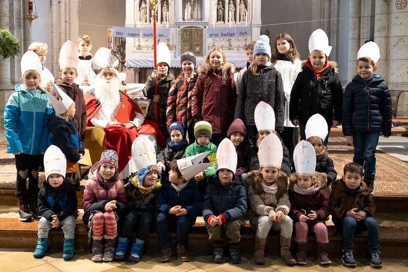 Kinderkirche am 7.12.: Besuch des Hl. Nikolaus. Wir hörten eine Geschichte vom Hl. Nikolaus und haben unsere eigenen Mitras gestaltet.