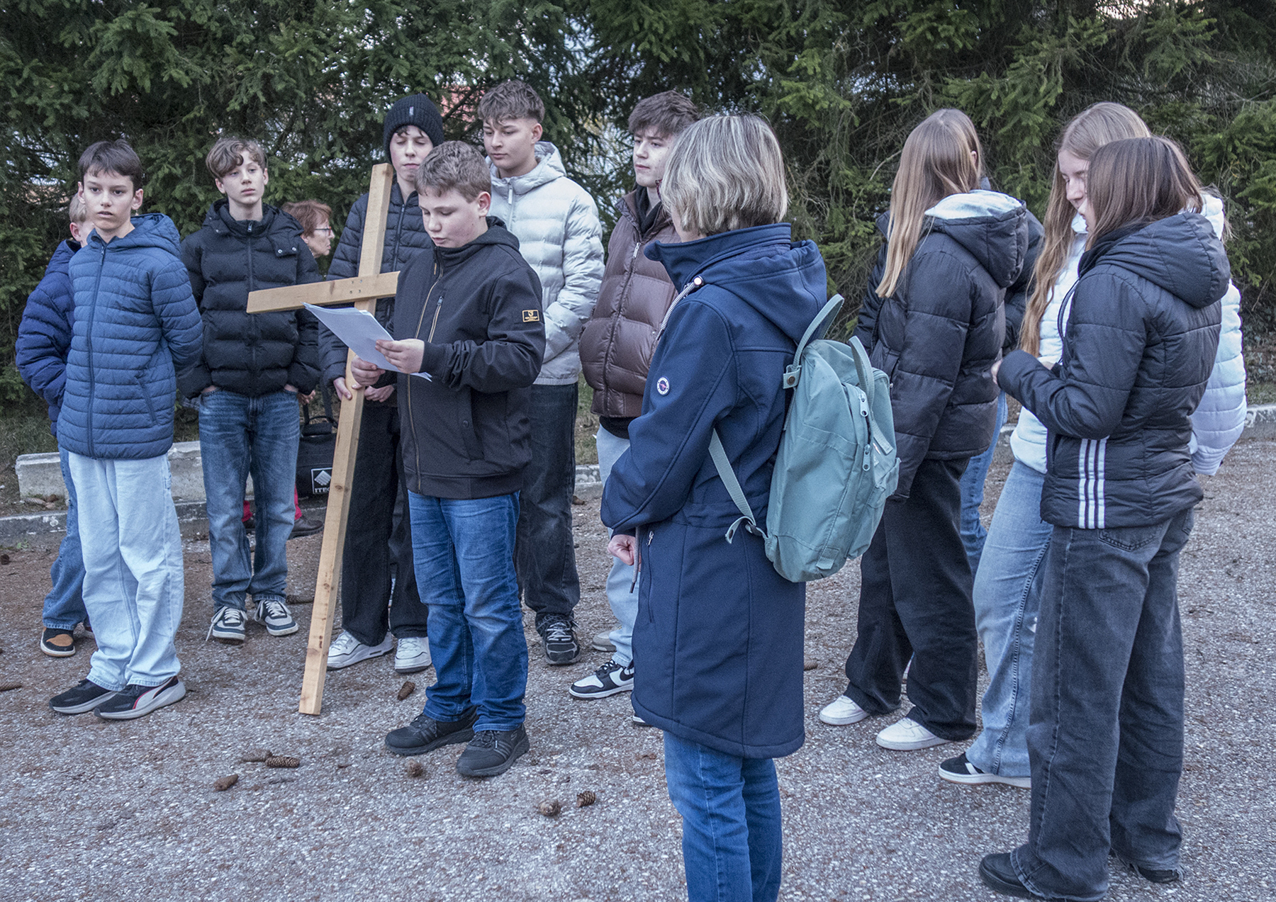 Im weiteren Verlauf übernahm die Jugend die zweite Station „Jesus begegnet seiner Mutter“, und der Sozialkreis lud bei der dritten Station „Simon von Zyrene hilft Jesus das Kreuz tragen“ zum Innehalten ein.