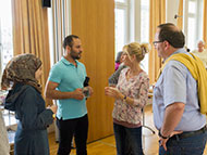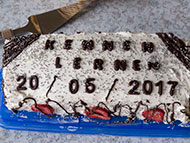 Als Dankeschön für die Einladung hat eine junge Asylwerberin die selbst gebackene und verzierte Torte "Kennenlernen" mitgebracht.