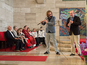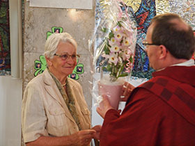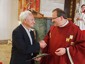 Da Rudi Markgraf seit 50 Jahren regelmäßig und mit viel Leidenschaft bei vielen Gottesdiensten die Orgel spielt, wurde ihm am Pfingstsonntag eine diözesane Ehrung und ein kleines Geschenk der Pfarre überreicht.