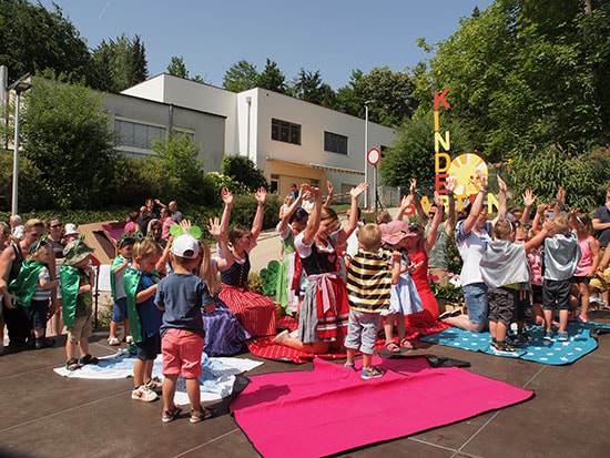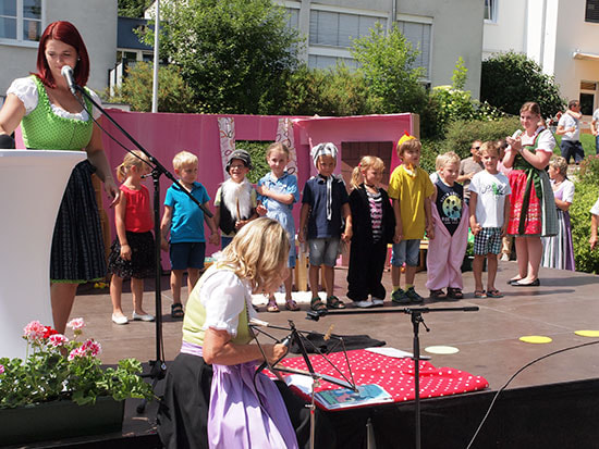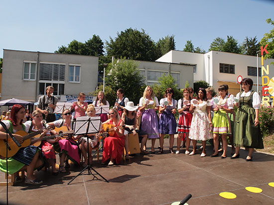 Sogar die Pädagoginnen, in ihren schicken Dirndlkleidern, brachten ein gemeinsames Musikstück zur Aufführung.